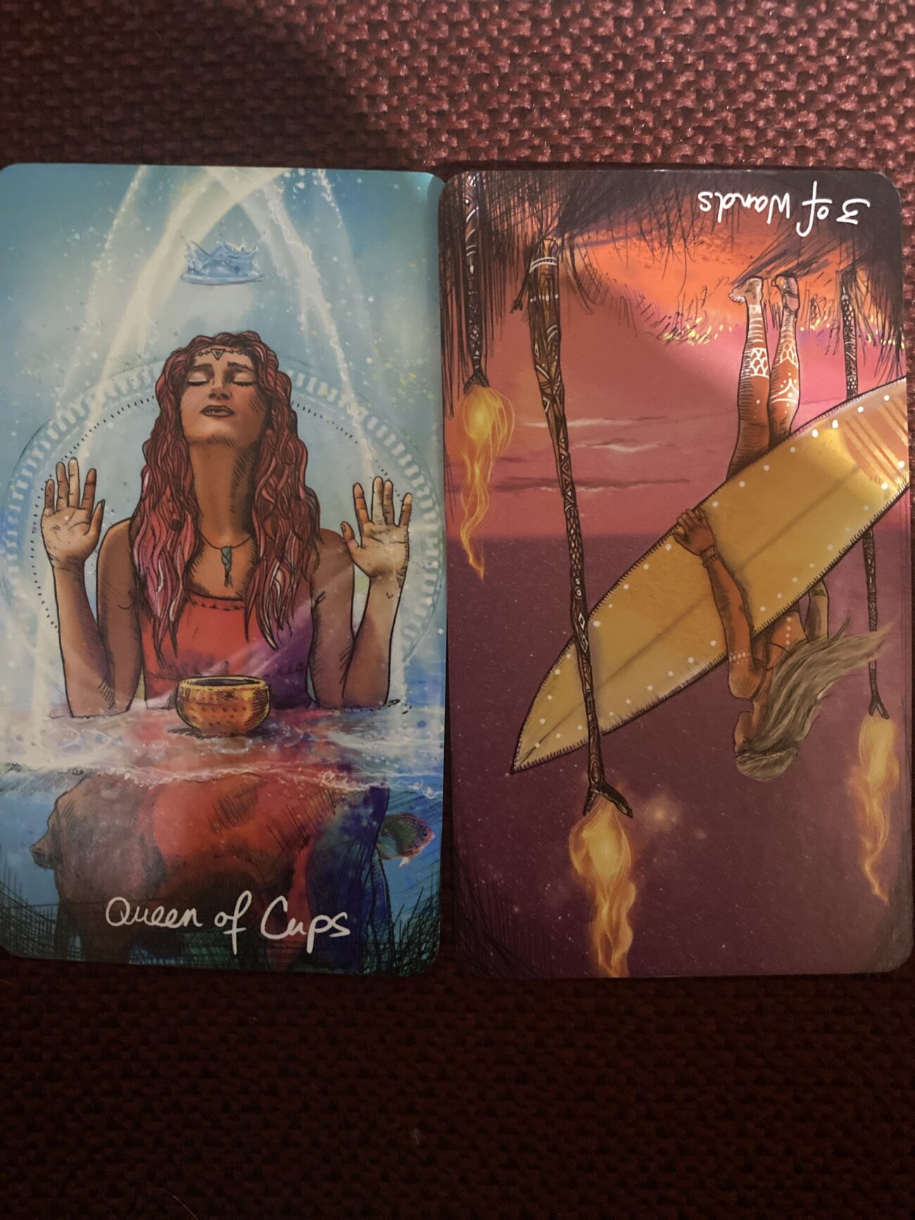 Daily Reading – Light & Shadow – Queen of Cups / Three of Wands
